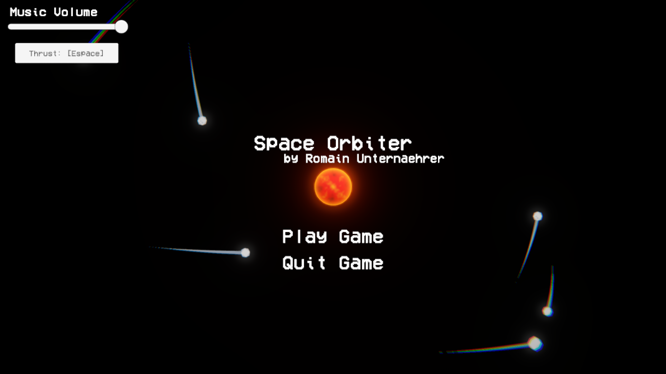 Space Orbiter is a minimalist physics-based survival game created for the Frene Jam 2. Your mission is simple: orbit an unstable sun for as long as possible. In the cold vacuum of space, gravity is a patient hunter, and eventually, it always wins.